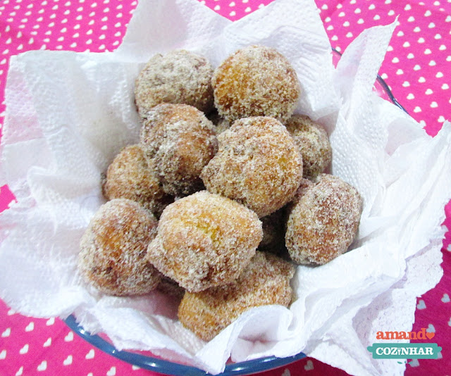 - Passe as bolinhas no açúcar com canela e sirva na hora.