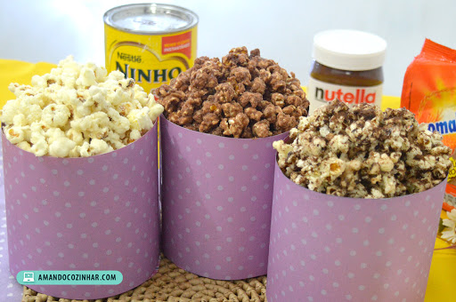 A gente já postou aqui a pipoca de leite ninho, vocês amaram e desde o ano passado ela vem fazendo bastante sucesso. Pensando nisso, trouxemos para vocês dois outros sabores: Nutella e Ovomaltine. As três ficam perfeitas e vai ser difícil você escolher sua favorita.