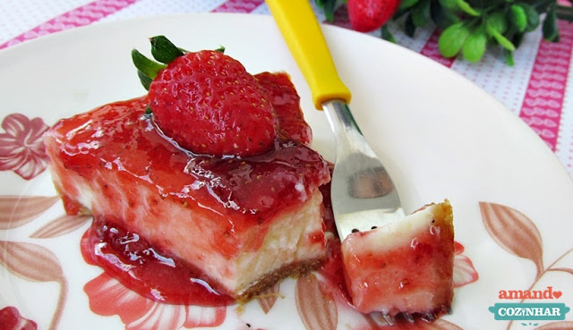 Cheesecake de morango com geleia caseira